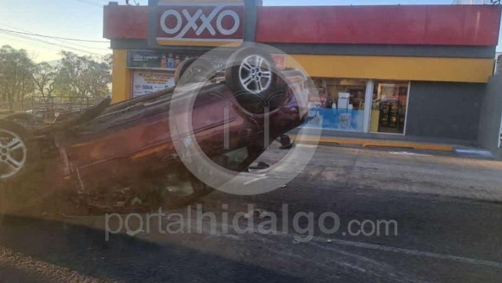 Volcadura de auto en desviación a Pátzcuaro