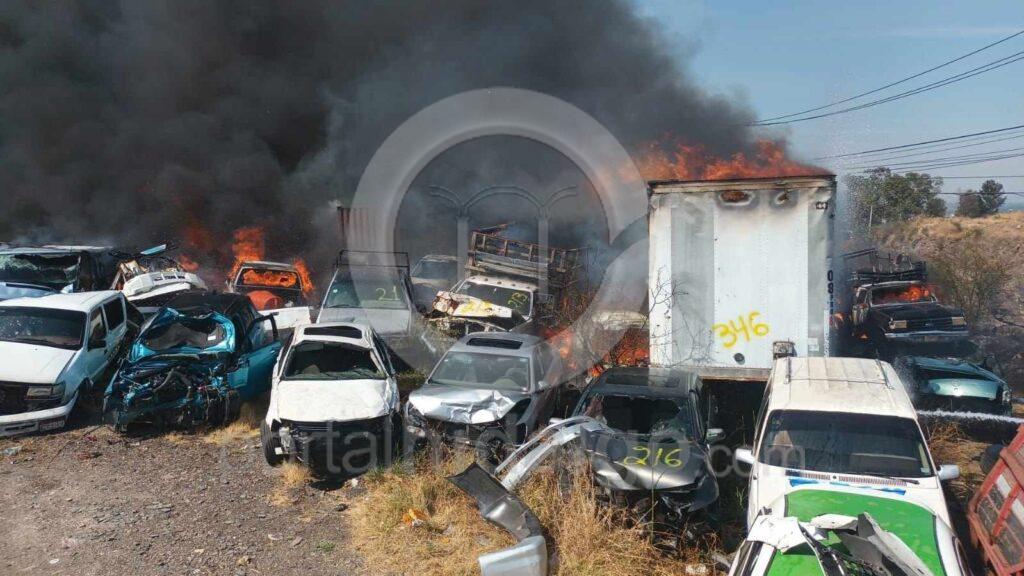 Un incendio en un corralón de vehículos chatarra ocurrió la tarde de este miércoles en el municipio de Tarímbaro en los límites con Morelia y dejó algunos automotores viejos quemados.