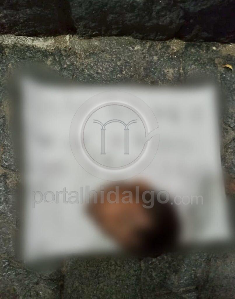 De las correspondientes diligencias se hicieron cargo agentes y peritos de la Unidad de Servicios Periciales y Escena del Crimen (USPEC), mismos que debajo de la cabeza ubicaron una cartulina de color blanco, con un mensaje de amenaza sobre la pugna entre grupos delincuenciales rivales.