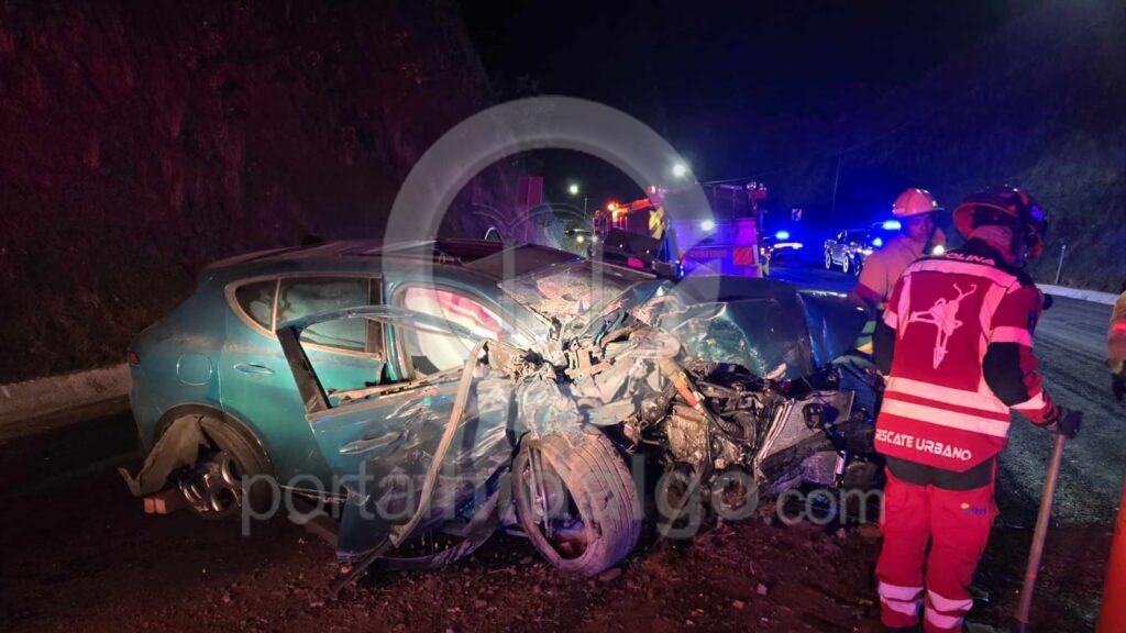 El accidente se registró durante los primeros minutos de este domingo y fue reportado al número de emergencias 911. Se apreció que el vehículo siniestrado es un Tonale, color verde, con matrícula PLM039D, el cual terminó destrozado de la parte frontal.