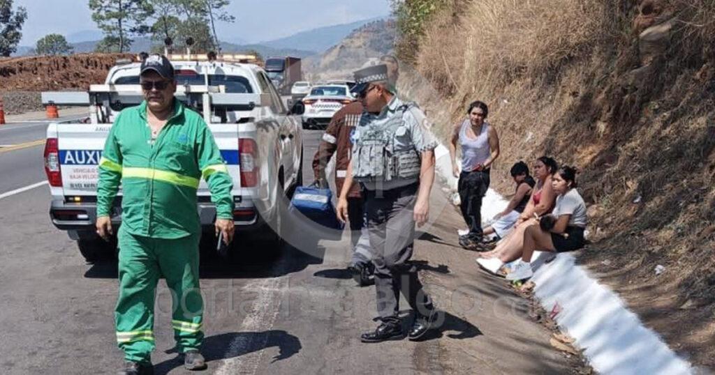 Primeramente, en el kilómetro 102, del tramo Uruapan Taretan, ocurrió un choque lateral entre un camión tipo torton de color rojo con blanco y una camioneta Ford de color blanco, con saldo de dos personas heridas, mismas que fueron auxiliadas por Bomberos de Rescate Uruapan I.A.P.