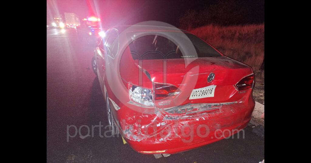 En el municipio de Arteaga, a la altura del kilómetro 204, cerca de la caseta de Las Cañas, tuvo lugar una carambola en la que estuvieron involucrados 3 vehículos, entre ellos uno auto Jetta de color rojo, una camioneta de turismo y una camioneta SUV de color rojo, esta última termino destrozada y su conductor lesionado.