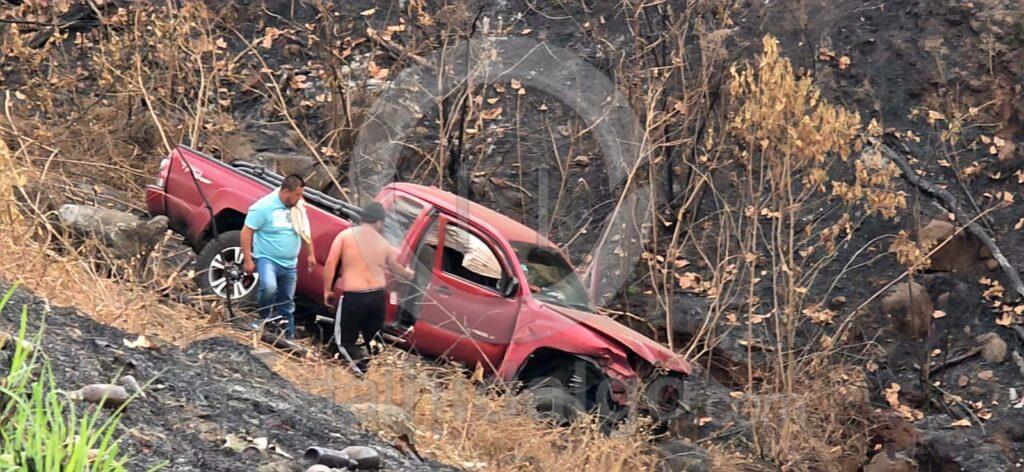 Mientras que en kilómetro 3+800 del tramo Ramal – Uruapan, cerca de Calicanto, una camioneta pick up de color guinda se precipitó a un barranco de aproximadamente 25 metros de profundidad.