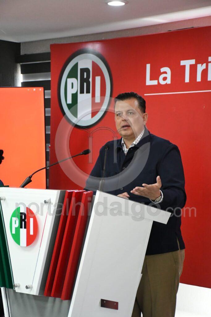 Morelia, Michoacán, a 11 de marzo de 2025. El dirigente estatal del PRI, Memo Valencia, lamentó la realidad que vive el gobierno que no es la realidad de violencia e inseguridad que padecen a diario los michoacanos.