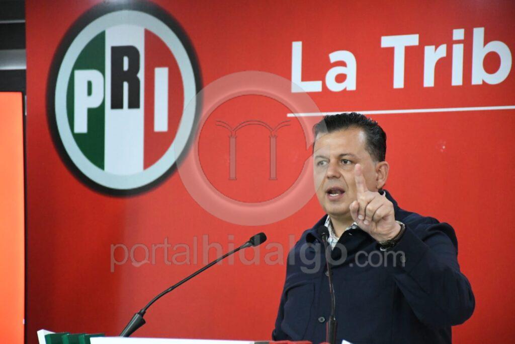 Morelia, Michoacán, a 11 de marzo de 2025. El dirigente estatal del PRI, Memo Valencia, lamentó la realidad que vive el gobierno que no es la realidad de violencia e inseguridad que padecen a diario los michoacanos.