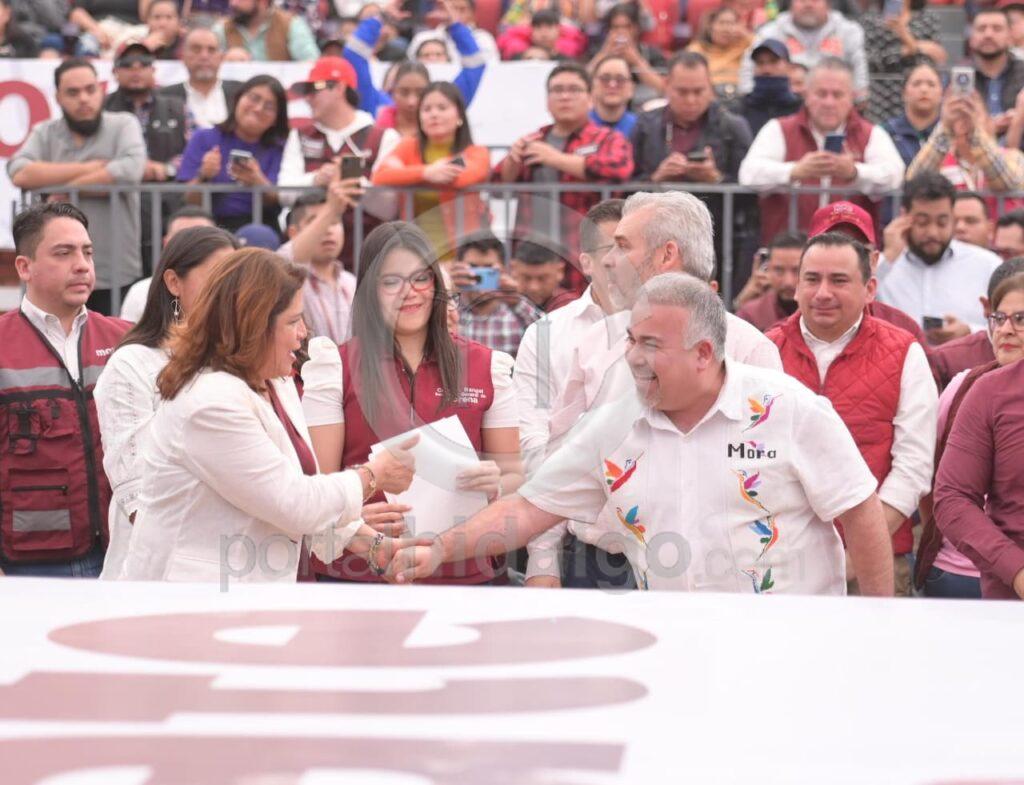 secretaria general del Comité Ejecutivo Nacional, Carolina Rangel Gracida; y del líder Estatal de Morena, Jesús Mora González.