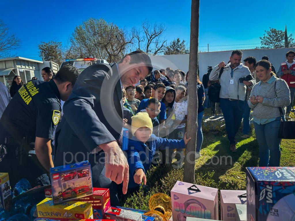 “Queremos que ustedes estén muy orgullosos de sus mamás y papás que son policías y agradecemos a los empresarios, a la sociedad civil, que está participando y ayudando en esto”, expresó el Edil ante los pequeños reunidos en la Casa del Policía, y siendo acompañado por Roberto Ramírez Delgado, como representante de los empresarios morelianos que hicieron la donación de juguetes.