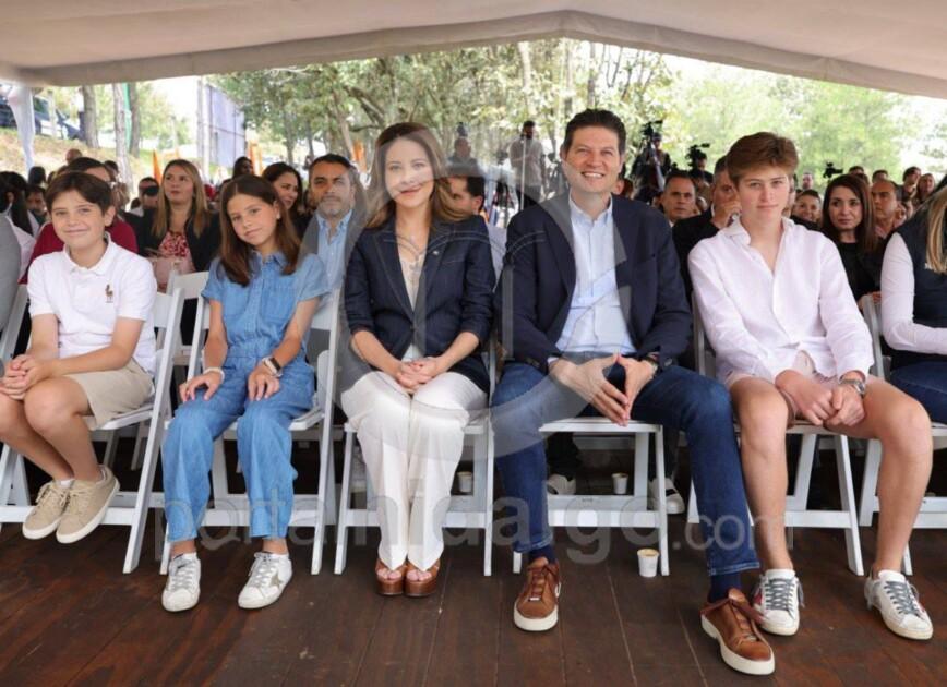 Alfonso Martínez y Paola Delgadillo colocan la primera piedra de la Casa del Adulto Mayor