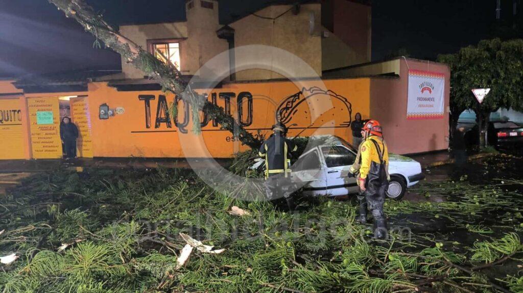 Los vulcanos se encargaron de segmentar el árbol caído para retirarlo. En las labores de ayuda también participaron los patrulleros municipales. Al final una grúa remolcó el coche siniestrado, el cual es de la marca Volkswagen, color azul celeste.
