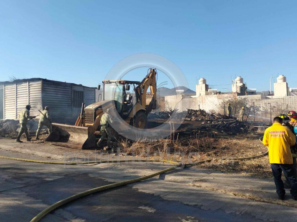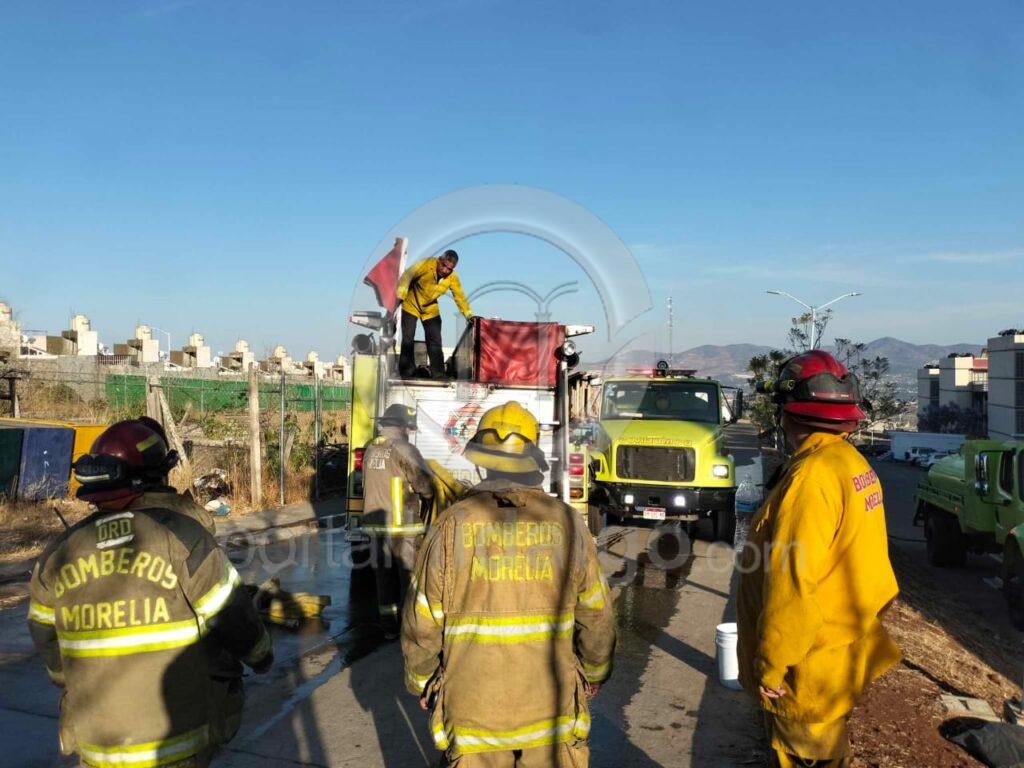 La tarde de este lunes se registró el incendio de varias piezas de madera tipo cimbra y tarimas que estaban acumuladas en un predio del fraccionamiento Camponubes, ubicado al poniente de Morelia.