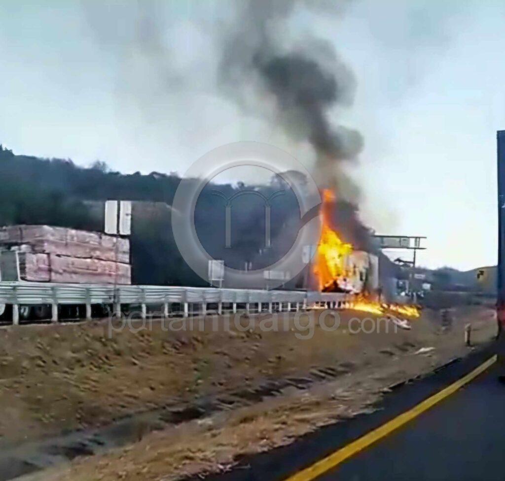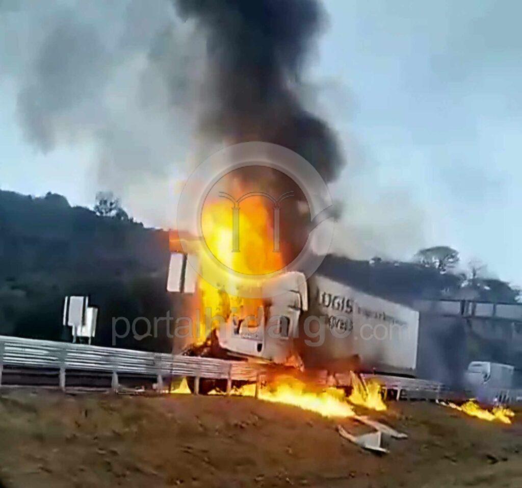 Zinapécuaro, Mich-Un tractocamión ardió en llamas durante la mañana de este martes sobre la autopista México-Guadalajara, hecho que sólo dejó daños materiales, informaron fuentes policiales y de rescate.