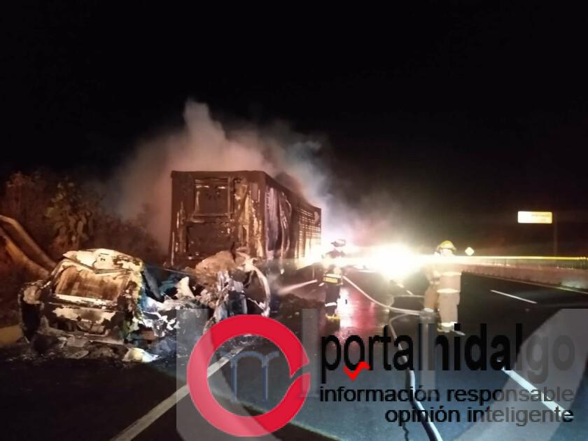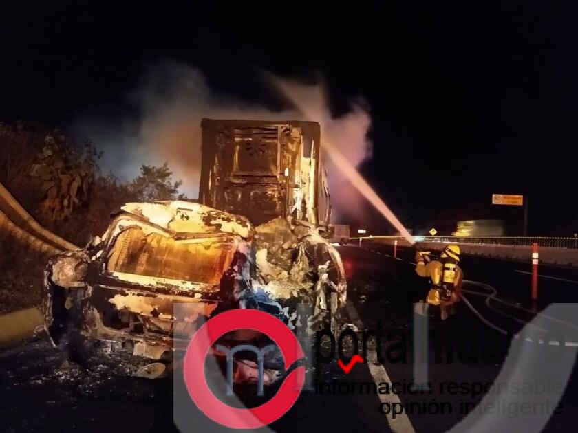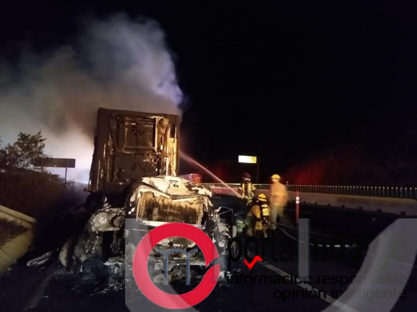 Un tractocamión terminó convertido en chatarra carbonizada tras incendiarse sobre la autopista Siglo XXI, en el tramo carretero Pátzcuaro-Uruapan, informaron fuentes de rescate y policiales, las cuales agregaron que la quemazón se debió a una falla mecánica y no hubo personas heridas.