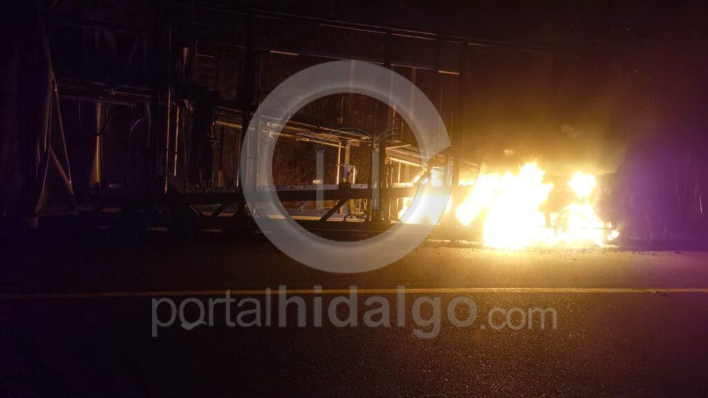 Mientras que en el kilómetro 250 del tramo Las Cañas – Feliciano, el chofer de un tráiler nodriza (vacío), se percató que de las llantas traseras de su remolque ardían en llamas, por lo que se detuvo y desenganchó el resto de su unidad.