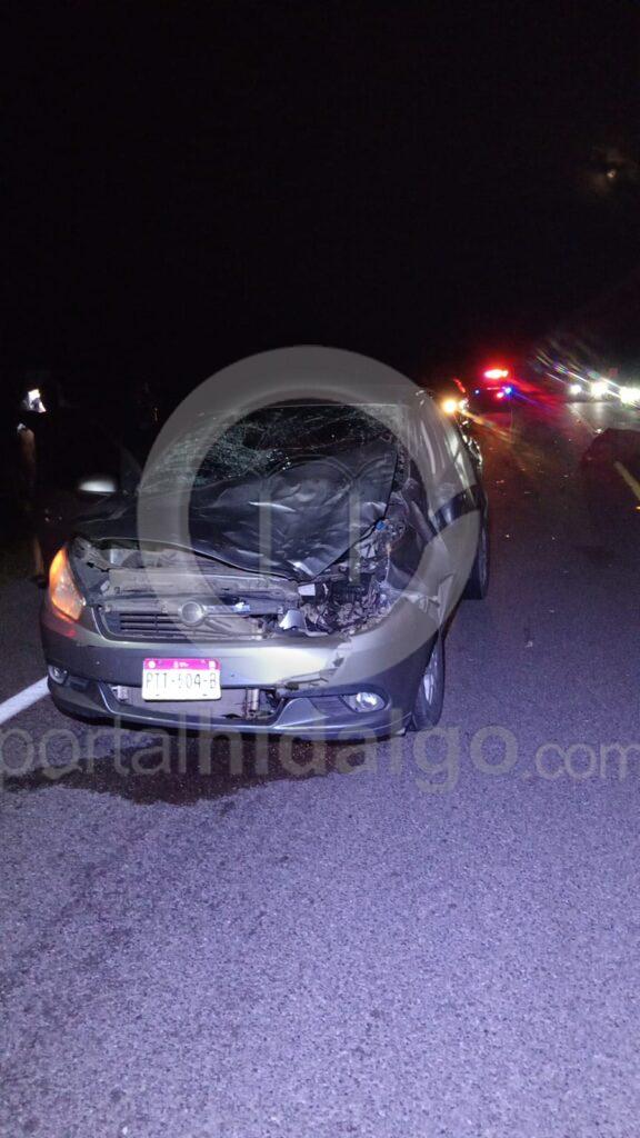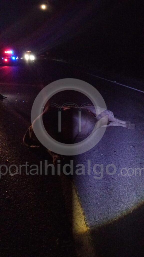 Primeramente, en el kilómetro 285 cerca de la caseta de Feliciano, un vehículo Dodge Visión de color gris, embistió a un semoviente resultando muerto el animal y lesionados levemente los ocupantes del coche, identificados como Miguel Ángel y Rosa Isela de 36 y 33 años de edad, respectivamente.