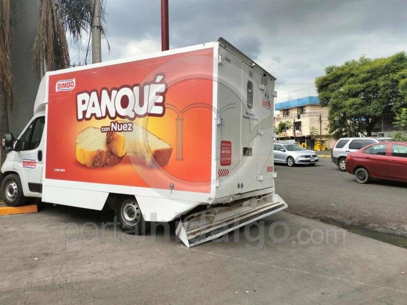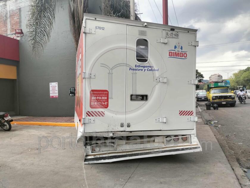 Una automovilista resultó levemente lesionada tras chocar contra la retaguardia de un camión de la empresa Bimbo, que estaba estacionado a la orilla de la avenida Décima y/o Escuadrón 201, al poniente de Morelia, derivado del impacto el vehículo repartidor (sin ocupantes) fue impulsado varios metros y se estrelló contra una palmera ubicada al exterior de un Oxxo, cerca de la calle Joaquín Rivadeneyra.