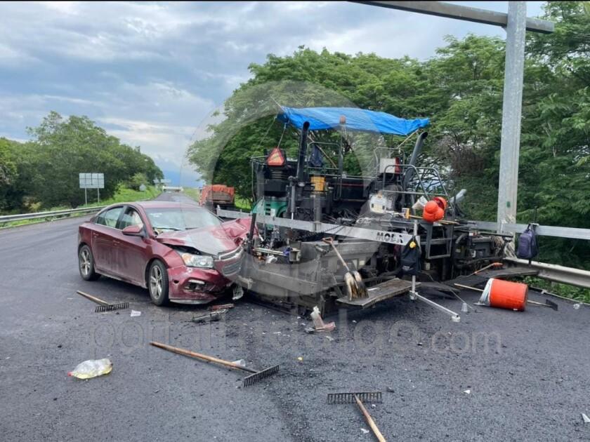 De acuerdo con fuente de rescate el percance tuvo lugar a la altura del kilómetro 132, del tramo carretero Taretan-Santa Casilda, donde un automóvil Chevrolet de color guinda, con placas de PKU-854-E, impactó contra una pavimentadora Vogele, de color verde.