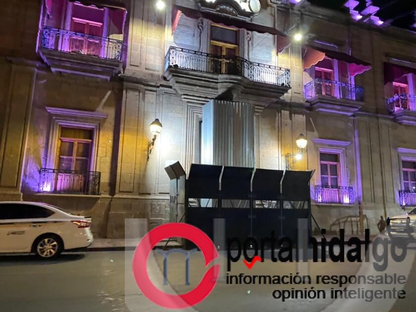 Con vallas y una gran lámina la puerta principal del Palacio de Gobierno fue protegida desde hace 48 horas.