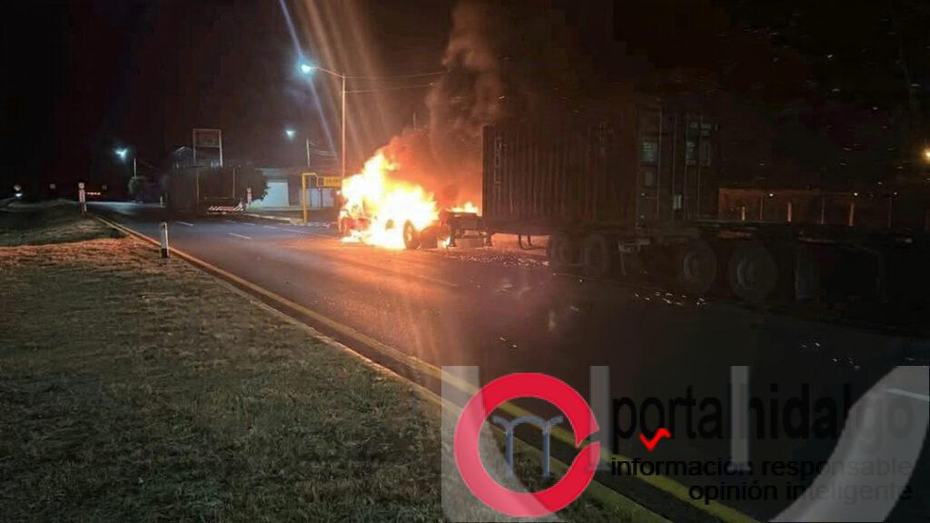 En el acceso al municipio de Zitácuaro, a la altura del denominado “Puente de Fierro”, delincuente se apoderaron de un vehículo, que atravesaron sobre la vialidad y le prendieron fuego.