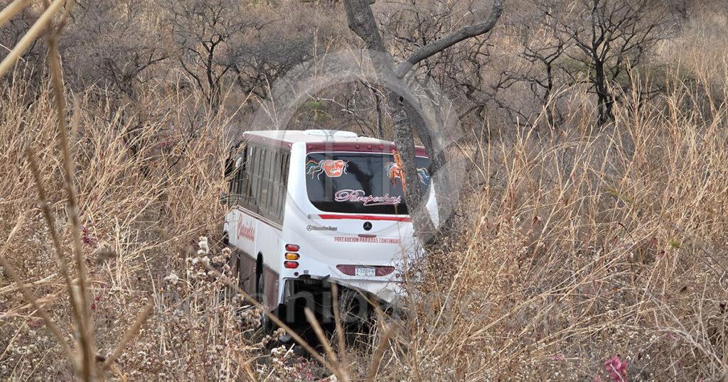 Camión de pasajeros se va un desnivel en la carretera Jacona-Jiquilpan