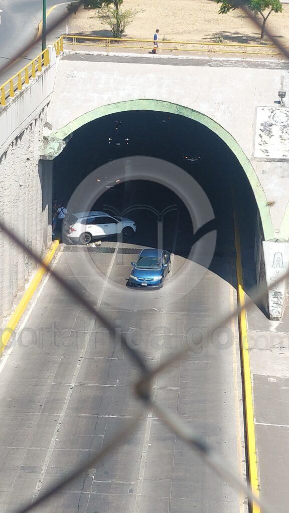 El vehículo transitaba con dirección del Mercado de Abastos hacia la salida a Mil Cumbres cuando, por razones aún no determinadas, terminó impactado dentro del túnel, generando afectaciones parciales a la circulación vehicular en la zona.