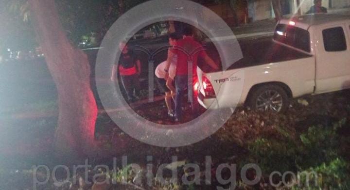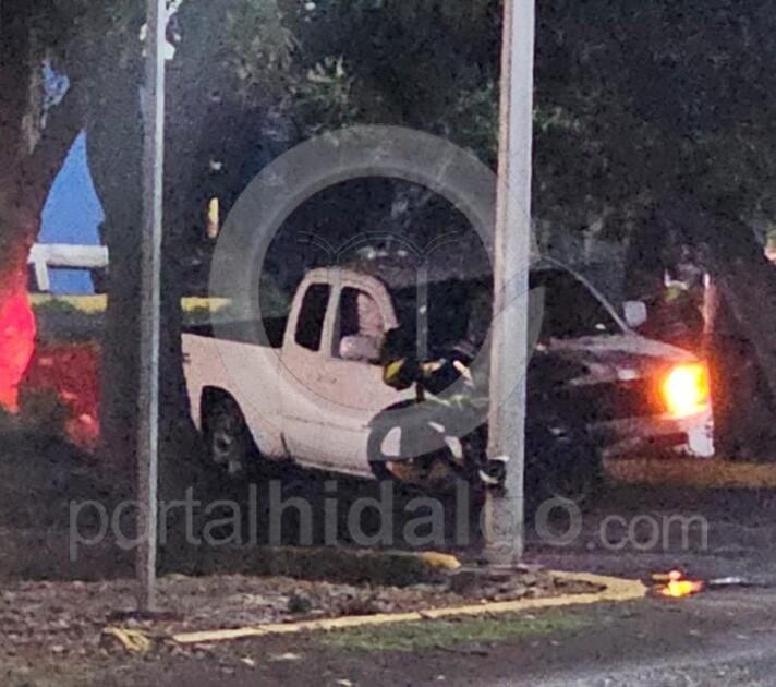 La camioneta involucrada es una Toyota Tacoma blanca, la cual aparentemente era conducida a exceso de velocidad.