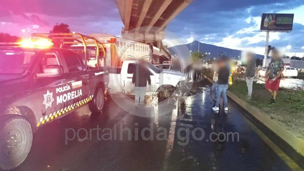 Una camioneta se salió del camino en el Libramiento Norte de Morelia y chocó contra un poste del alumbrado público, el cual terminó derribado, accidente que ocurrió en el área del Distribuidor Vial Salida a Salamanca, informaron fuentes allegadas al tema.