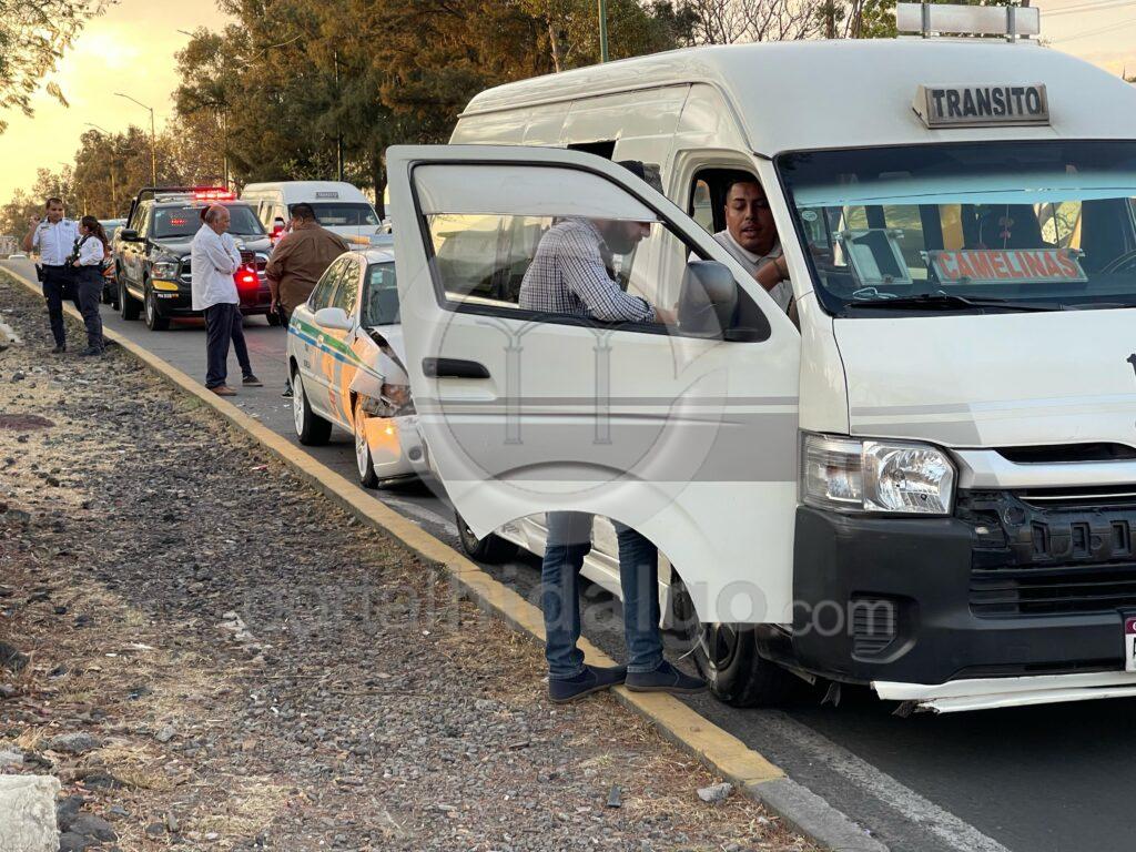 Al menos dos personas resultaron lesi0nadas tras el choque de un taxista contra la retaguardia de una combi de pasajeros sobre el Periférico Paseo de la República, en la zona oriente de la ciudad de Morelia, comentaron fuentes allegadas a las autoridades policiales.