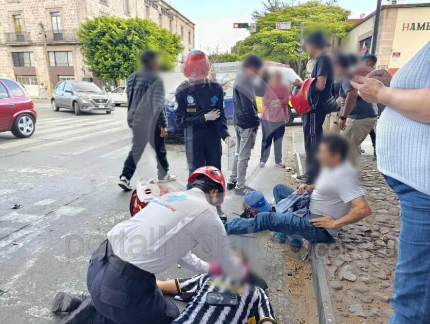 Un choque entre una camioneta y una motocicleta dejó dos lesi0nados sobre la avenida Madero Poniente, dentro del Centro Histórico de Morelia.