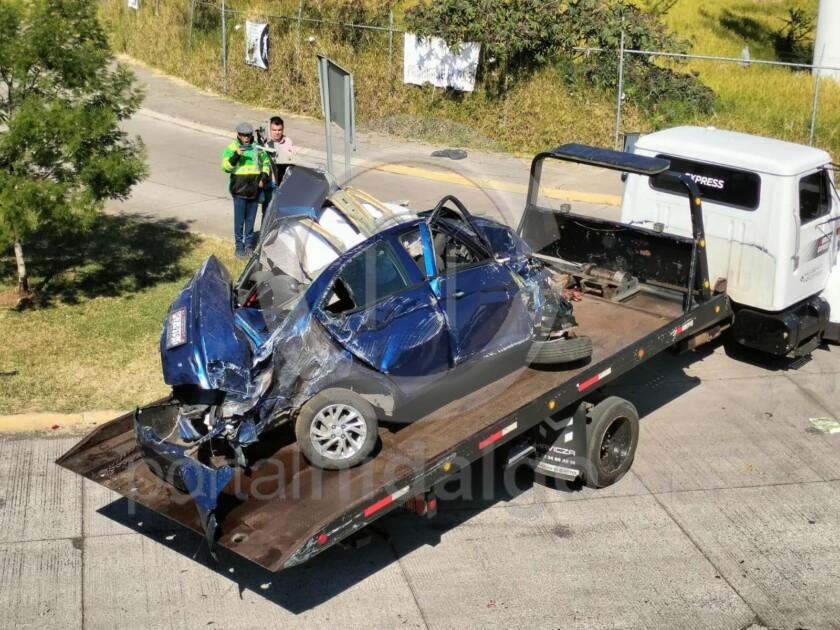 - Un auto Chevrolet Aveo, color azul y placa PGZ915C–el que cayó desde el puente a carril lateral–.