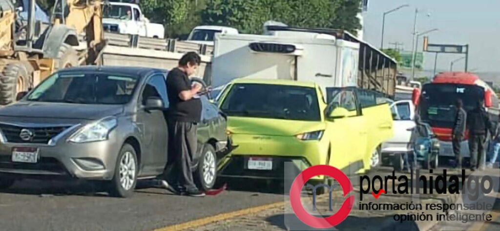 Cuatro vehículos protagonizaron un choque por alcance sobre la avenida Morelos Norte, en la salida a Salamanca, incidente que sucedió la mañana de este martes y perjudicó bastante el paso de otros automotores, trascendió en la cobertura de la noticia.