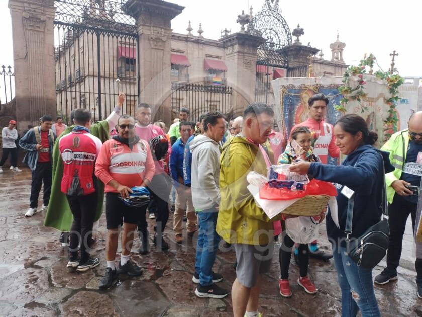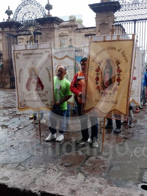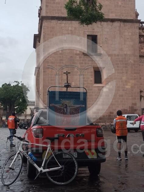 Tras pedalear por más de 71 kilómetros, ciclistas de Zinapécuaro llegaron a “cumplir su manda” a la catedral de Morelia.