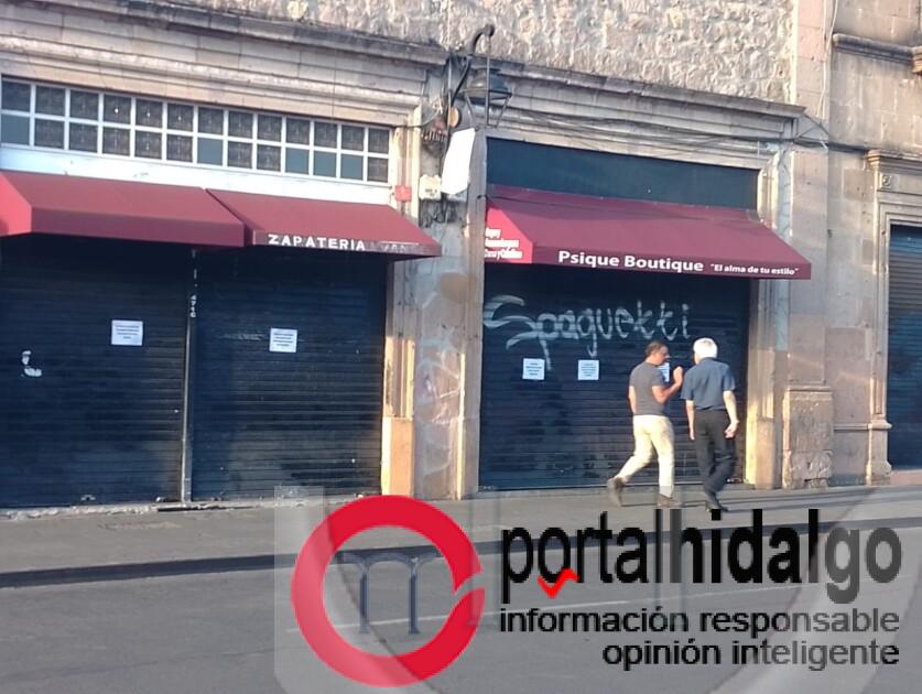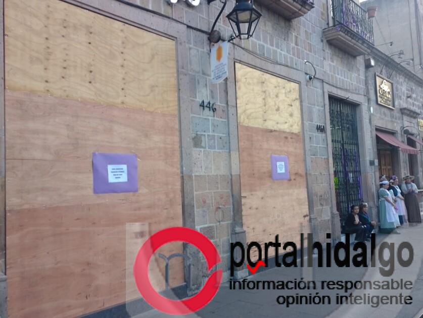 Ante el paso de la marcha del #8M gran parte de los comerciales de la antigua Calle Real cerraron sus puertas y protegen los negocios con estructuras.