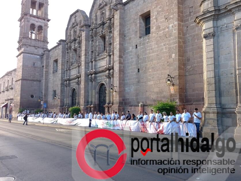 Sobre el Templo de las Monjas una valla humana vestida de blanco protege el recinto religioso.