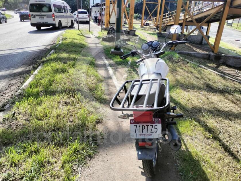 Asimismo, se apreció que la mencionada motocicleta es una Vento, color blanco con negro, con matrícula 71PTZ5. Agentes de la Guardia Civil de Seguridad Vial se encargaron del peritaje correspondiente para deslindar responsabilidades y las unidades siniestradas fueron retiradas de la escena.