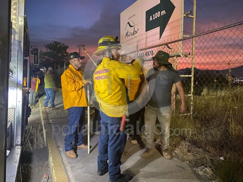 Brigadas de la Coordinación Municipal de Protección Civil y Bomberos de Morelia, se encuentran sofocando el incendio que se registra al sur de la ciudad.