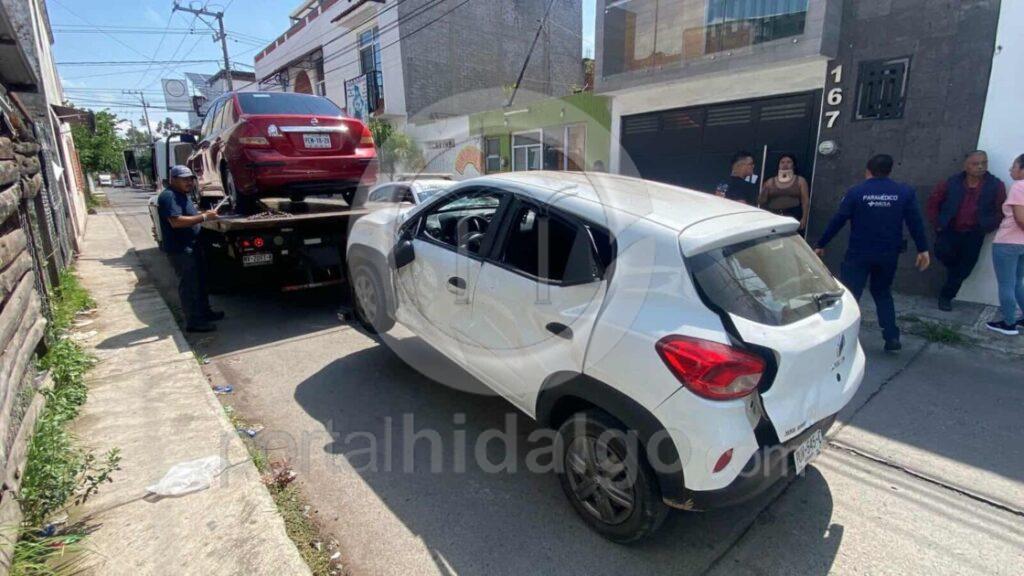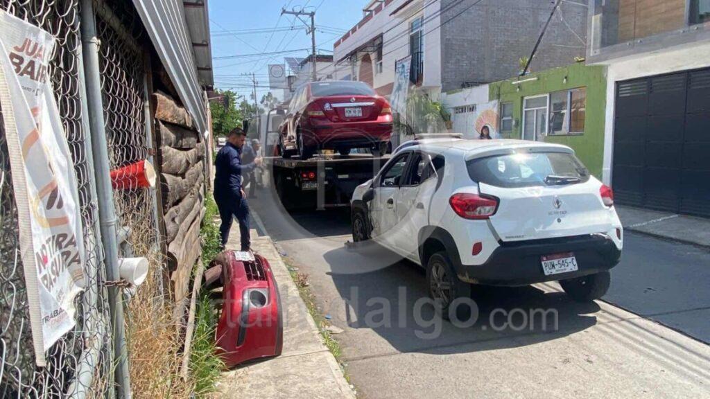 El hecho sucedió la mañana de este martes sobre la carretera Isidro Fabela esquina con Senegal. Se apreció que los automotores involucrados son de las siguientes marcas: un Nissan Tiida rojo, un Renault blanco, así como el mencionado transporte del Servicio Público con número económico 19.