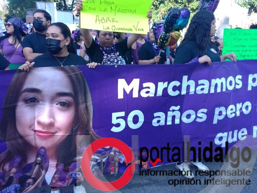 Uno de los contingentes que sumó más es la encabezada por la señora Verónica Villaseñor madre de la maestra Jessica González que fue asesinada a golpes en septiembre de 2020 por Diego Urik