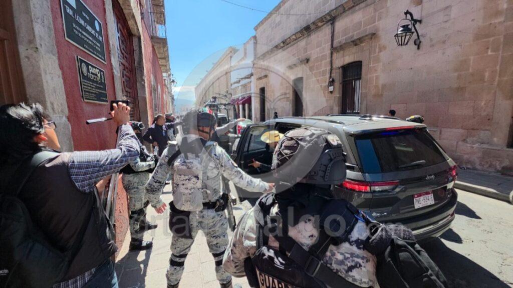 Con custodia de Guardia Nacional Hace su arribo al congreso del Estado Grecia Quiroz, viuda de Carlos Manzo, para tomar protesta como presidenta municipal sustituta de Uruapan
