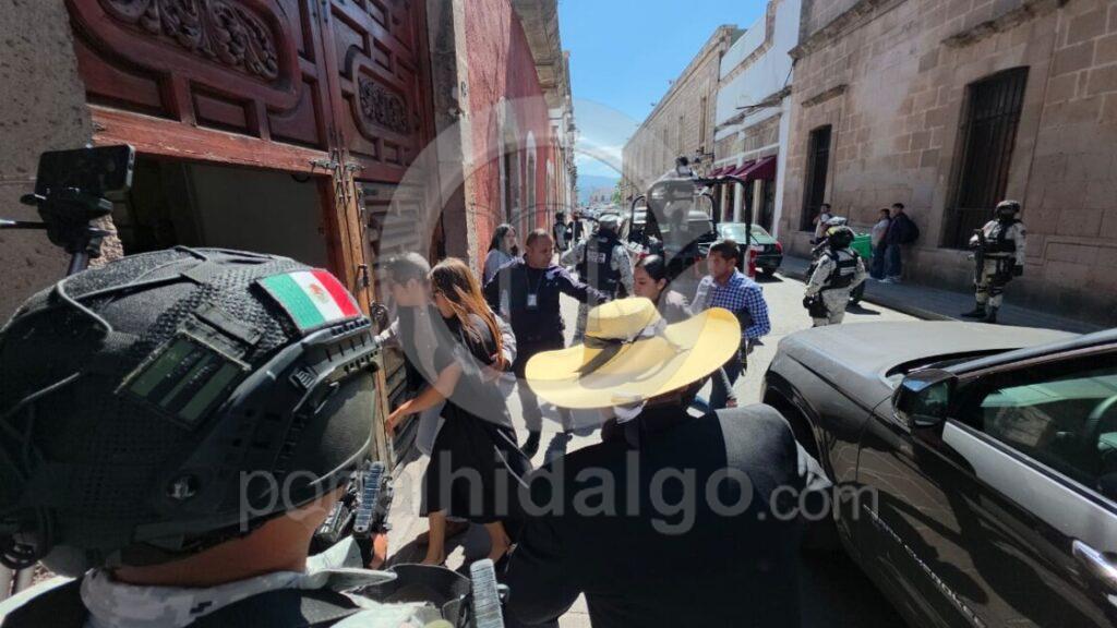 Con custodia de Guardia Nacional Hace su arribo al congreso del Estado Grecia Quiroz, viuda de Carlos Manzo, para tomar protesta como presidenta municipal sustituta de Uruapan