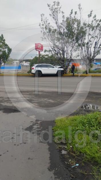 Se apreció que el vehículo siniestrado es de la marca Jeep, color blanco, el cual quedó destrozado de la parte delantera tras derribar el mencionado árbol; afortunadamente el incidente no dejó lesionados.