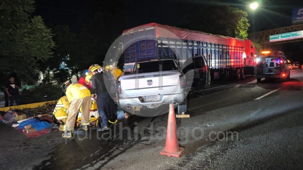 El conductor de una camioneta resultó malh3rido tras chocar contra la parte posterior de un camión tipo torton sobre el Libramiento nororiente de Morelia, en las inmediaciones de la Central de Abastos.