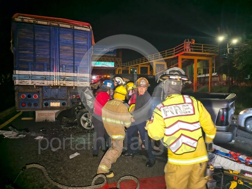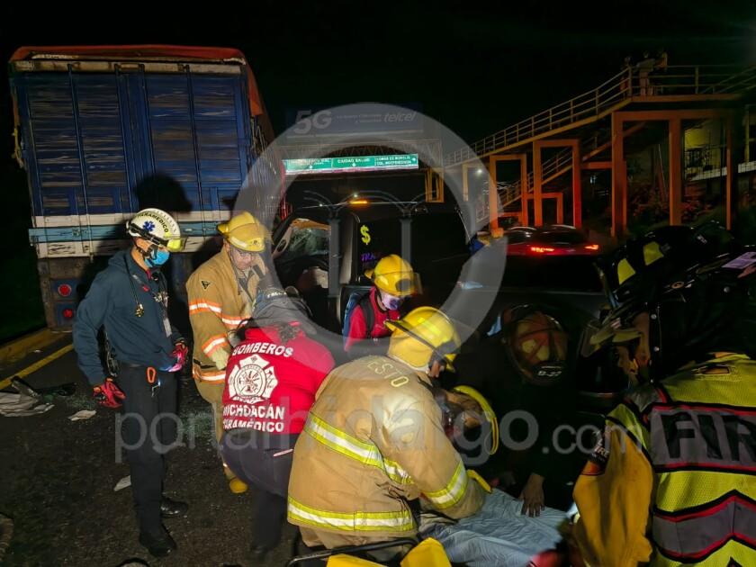 El conductor de una camioneta resultó malh3rido tras chocar contra la parte posterior de un camión tipo torton sobre el Libramiento nororiente de Morelia, en las inmediaciones de la Central de Abastos.