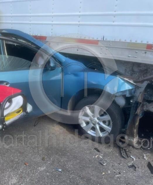 El auto compacto quedó aplastado debajo de la caja de la pesada unidad con su chofer prensado, por lo que al sitio acudieron paramédicos locales, quienes confirmaron el deceso del ciudadano.
