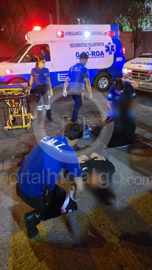 Zamora, Mich.-La noche de este viernes, se registró un choque entre dos motocicletas en este municipio dejando como saldo preliminar cuatro personas l3sionadas.