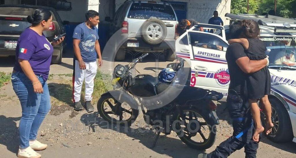 Apatzingán, Mich.-El choque entre una motocicleta y una cuatrimoto, dejó como saldo cuatro personas heridas, entre ellas 3 menores de edad, en la colonia Buenos Aíres de esta ciudad.
