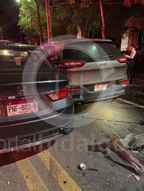 Un choque múltiple ocurrido sobre la avenida Camelinas, en la zona sur de la ciudad de Morelia, en el que estuvieron involucrados tres vehículos, dejó como saldo preliminar 2 personas les1onadas y cuantiosos daños materiales.