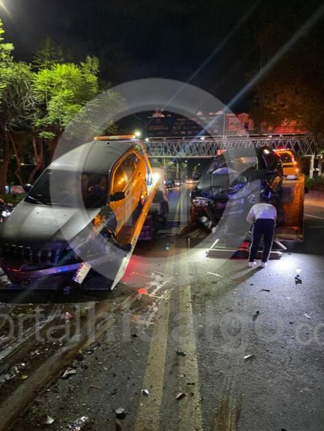 De acuerdo con la información preliminar la colisión tuvo lugar en el cruce con la calzada Juárez, donde impactaron una camioneta Jeep de color arena, con matrícula PTK -623-D, un auto Honda de color plomo, con matrícula PNF-803-B y un coche JAC, de color blanco con láminas de circulación PRU-580-D, este último salió proyectado y terminó en una jardinera por fuera de la cinta asfáltica.