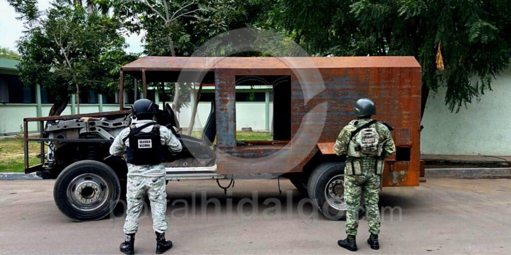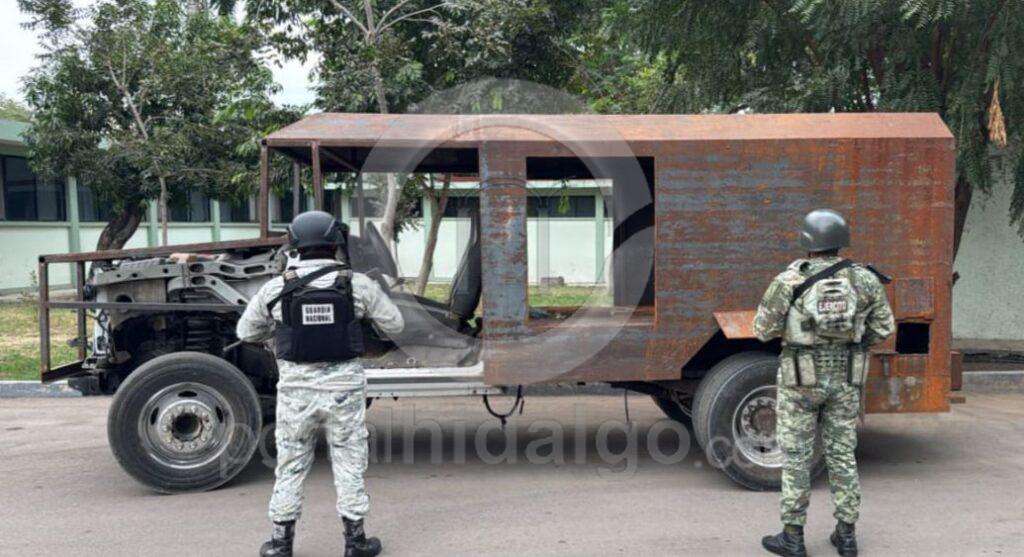 Apatzingán, Mich.-Al repeler una agresión armad@ en este municipio, agentes abatieron a uno de los atac@ntes, además aseguraron un vehículo con blindaje artesanal, dos camionetas dos con reporte de robo y armamento.