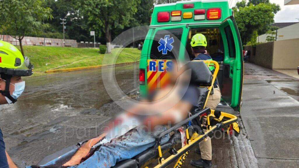 Enseguida arribaron paramédicos de Rescate para brindarle los primeros auxilios a Salvador J., G., de 41 años de edad, vecino del Fraccionamiento Valle Dorado, persona que fue canalizada de emergencia a dos hospitales particulares donde no fue recibido y finalmente ingresado en otro nosocomio.