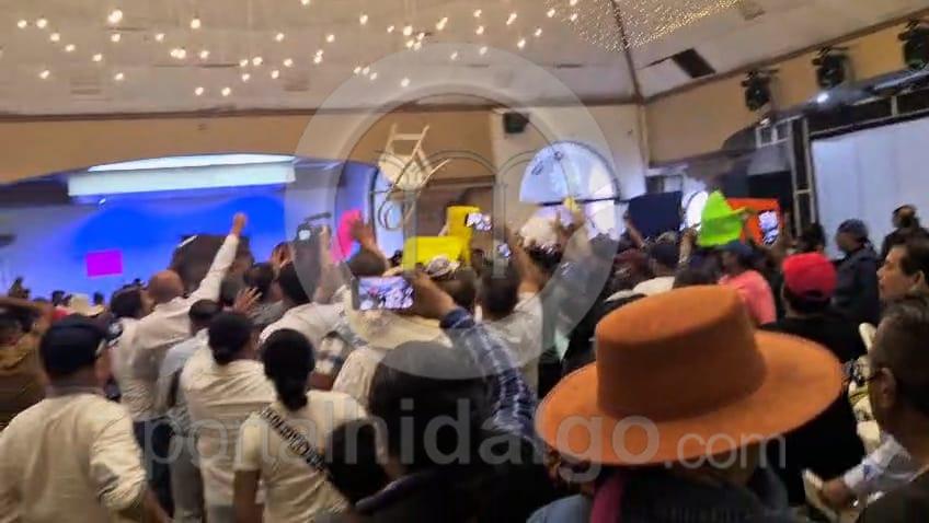 El grupo de choque integrado por decenas de hombres y mujeres presuntamente arribaron en dos autobuses que se estacionaron en las inmediaciones de el hotel Posada del Sol, descendieron e ingresaron al salón “La Conquista”, justo cuando Morón Orozco concluía su mensaje sobre la próxima elección de jueces y magistrados.